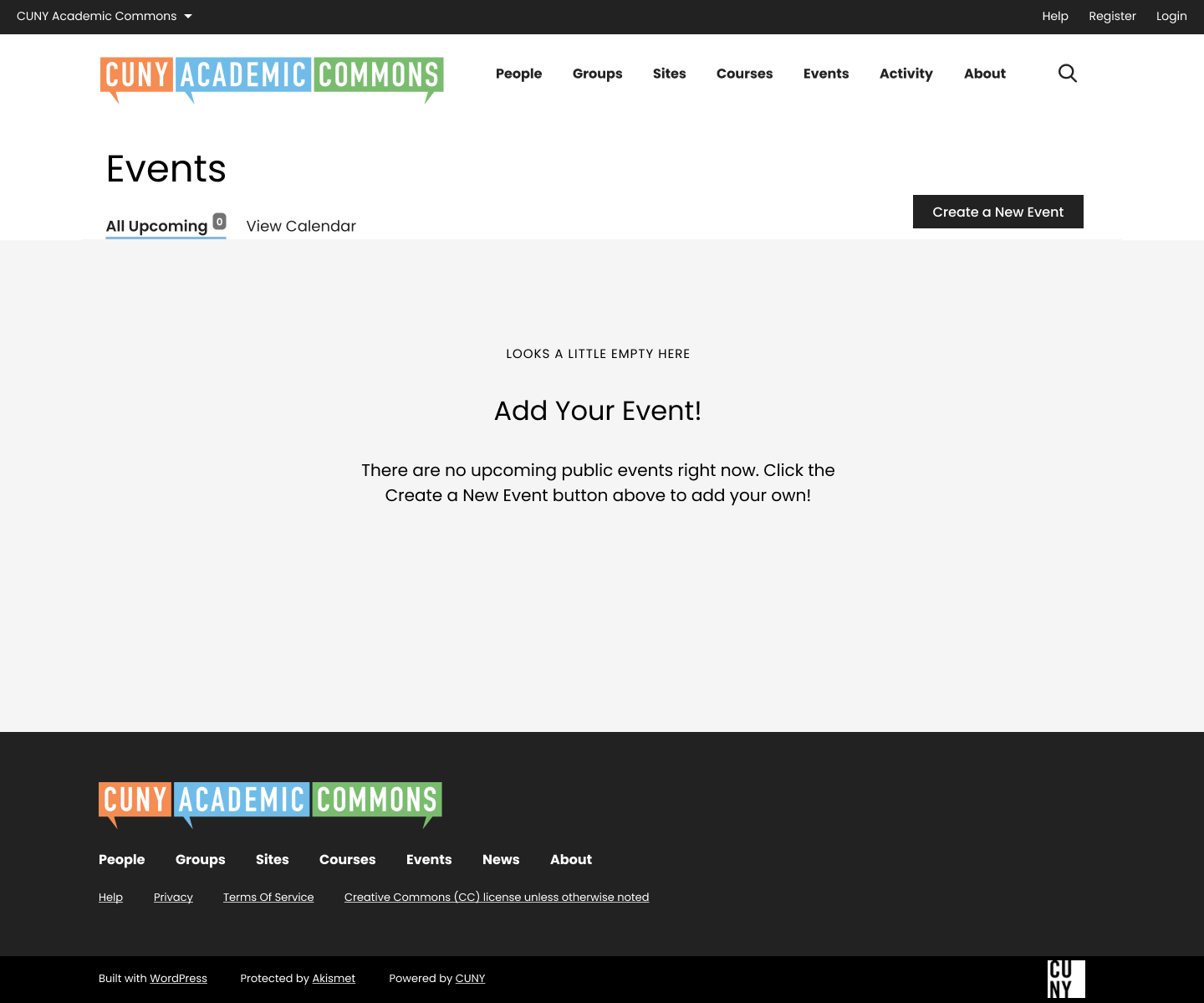 There are no upcoming public events right now. Click the Create a New Event button above to add your own!