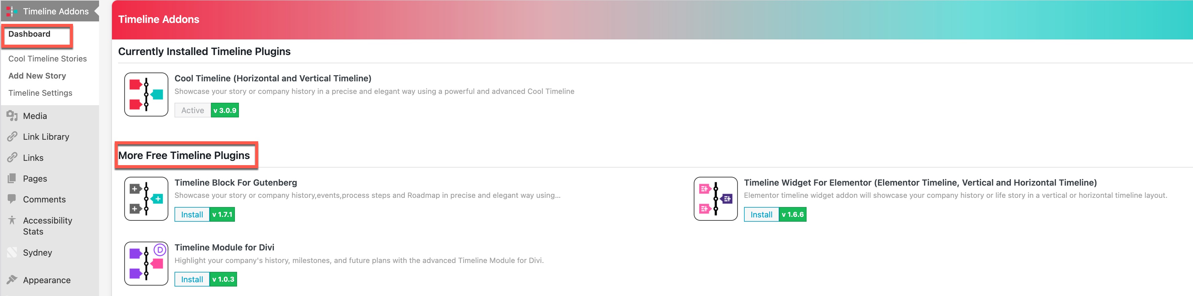 closed"cool timeline" plugin add-ons